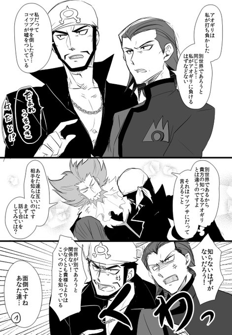 祠燐 固定に新刊サンプル Pa Twitter 取り急ぎ描いたので雑ですが 今作の歴代ボスの中でリメイクのアオギリマツブサが見当たらないので 主人公によって改心した世界線からボス達の過ちを正すべく颯爽と登場するシチュエーション等があれば燃える という妄想